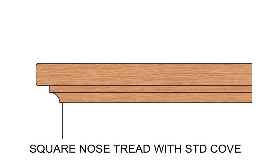 Cove is an important part of the structure of the stairs. Like a glue block, the cove supports the tread and riser joinery. If no cove is selected, this requires additional measures underneath the stair to ensure proper strength and stability. Below are some of the most common tread nose and cove combinations.
