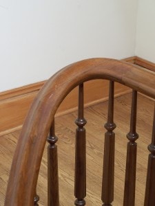 Victorian Era railings are often in need of repair as they tend to loosen with age. This is due to failure of the antiquated "hide glue" and the lack of intermediate newels. Most modern stair designs would use more newels within the rail system and much improved wood adhesives. Victorian era railings were also very short — typically from 27-30" high. Today rake rail height required by code is 34" to 38".