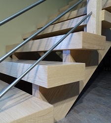 Stringers can be open or closed, dual-beam or mono-beam, or a variety of steel designs. Wooden stringer thickness is typically 1.75" to 4".